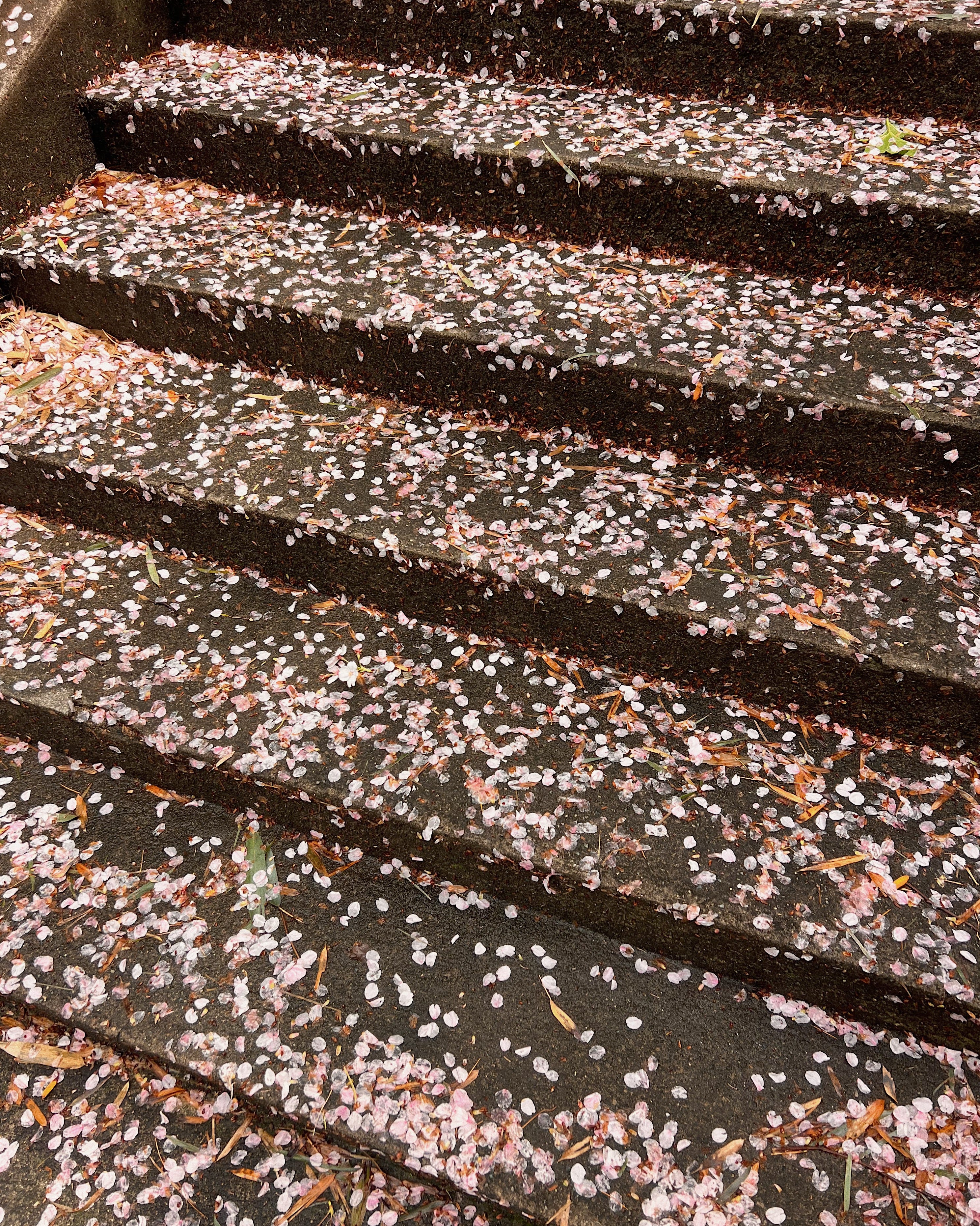 Sakura don’t speak when they are full. When there are too many of them. Pink pressing into pink on repeat until the branches disappear into sweetness and eager eyes, upwards cast, swallow their gasps.